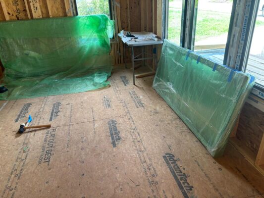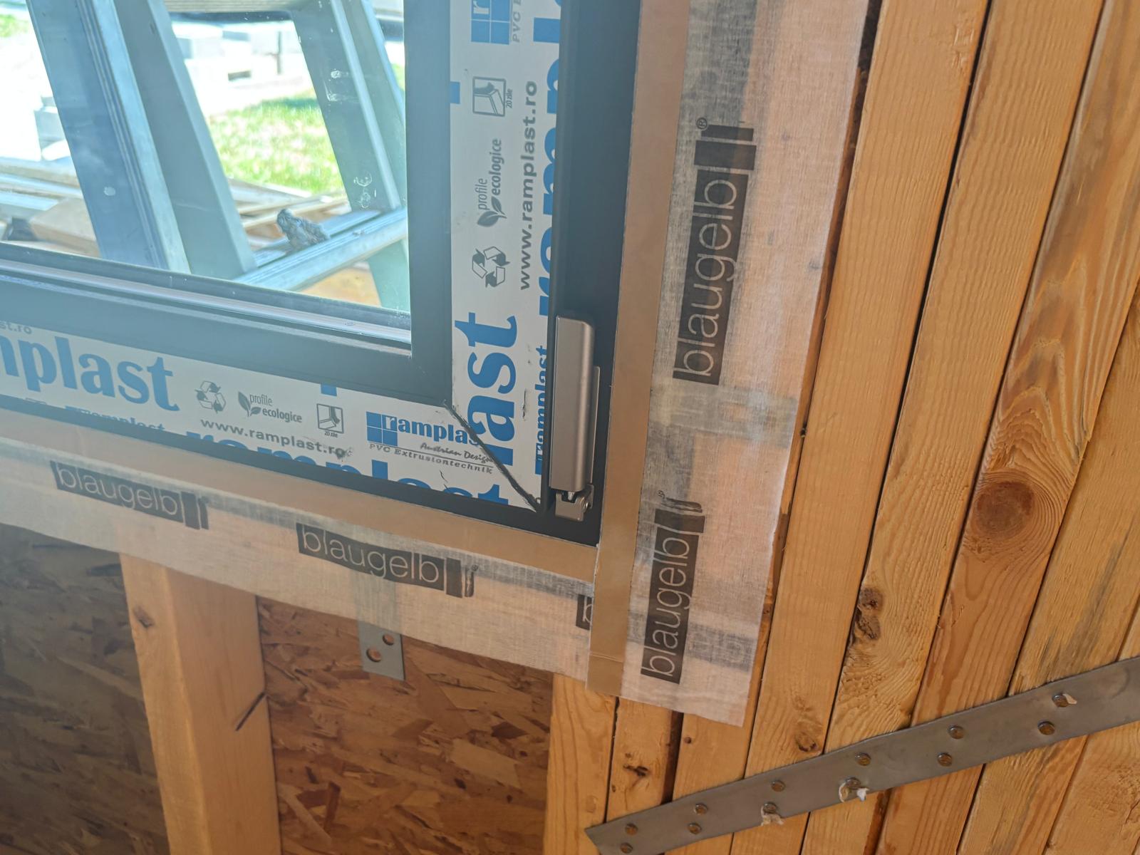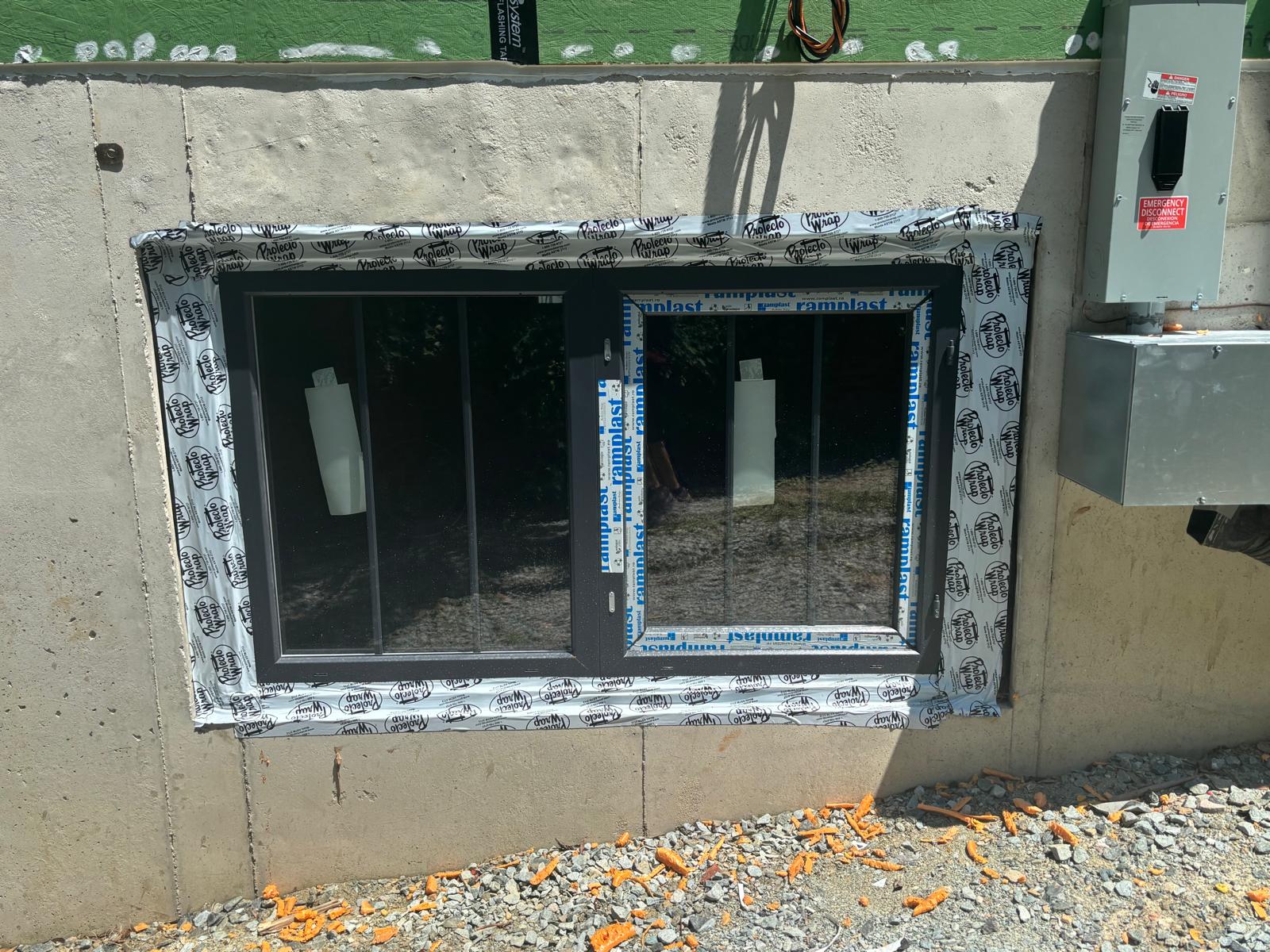 Exterior 4” waterproof self-adhesive tape and interior vapor barrier tape to seal and Wheater proof the bucking