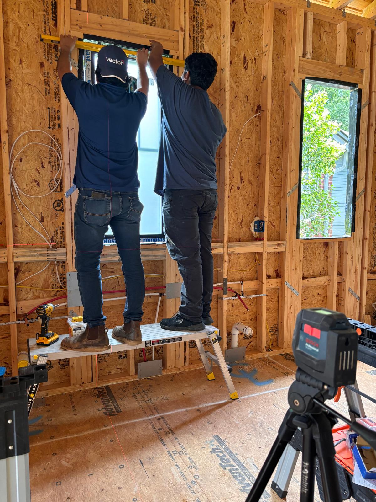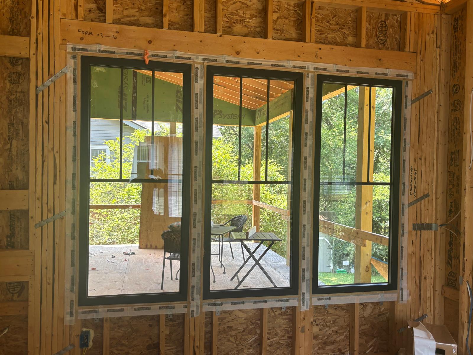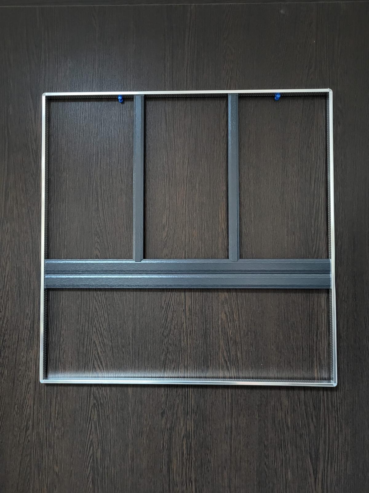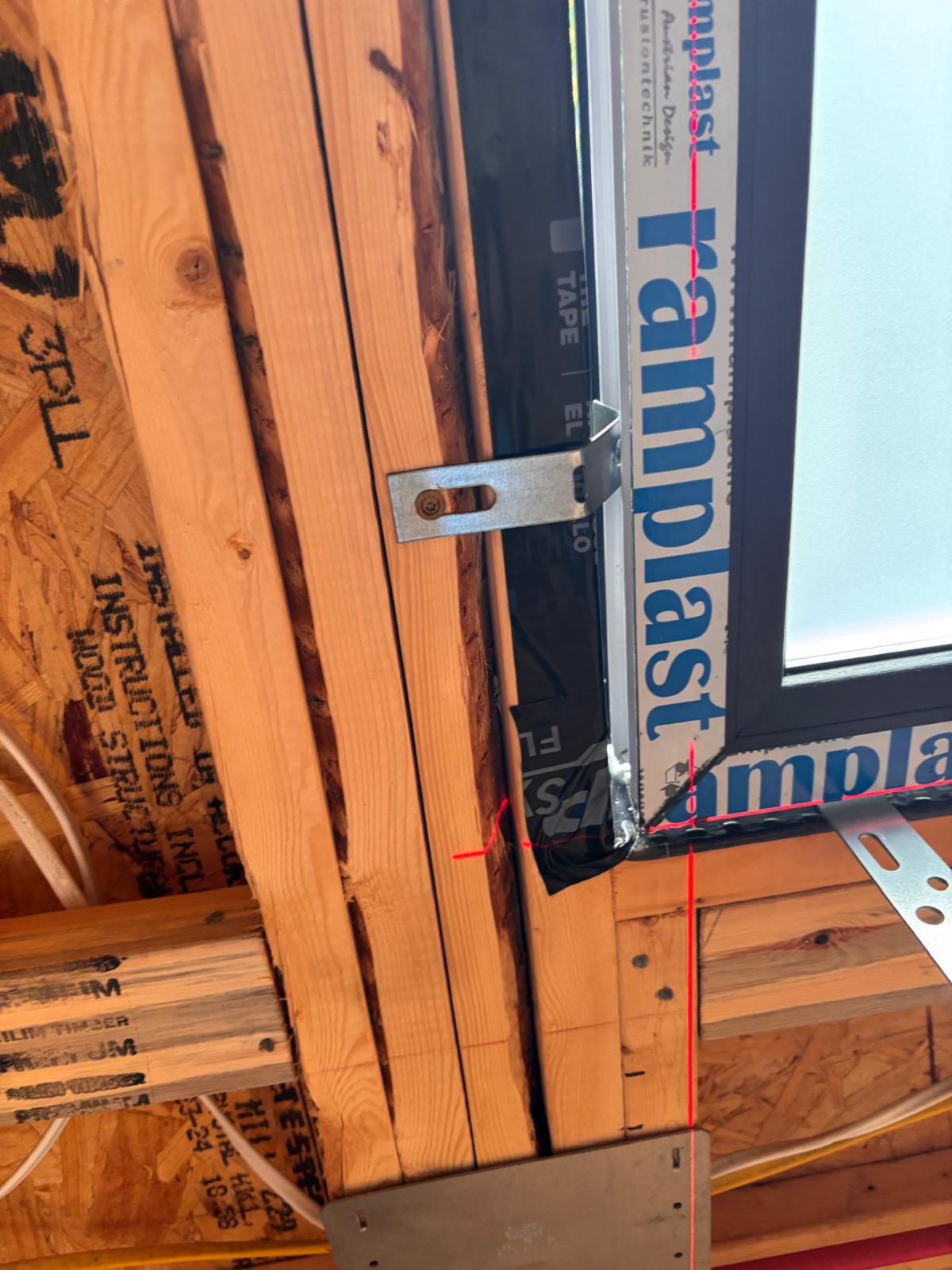 Installation with self-leveling brackets system , custom patented metal brackets attached to the frame and sash with self-drilling metal screws.