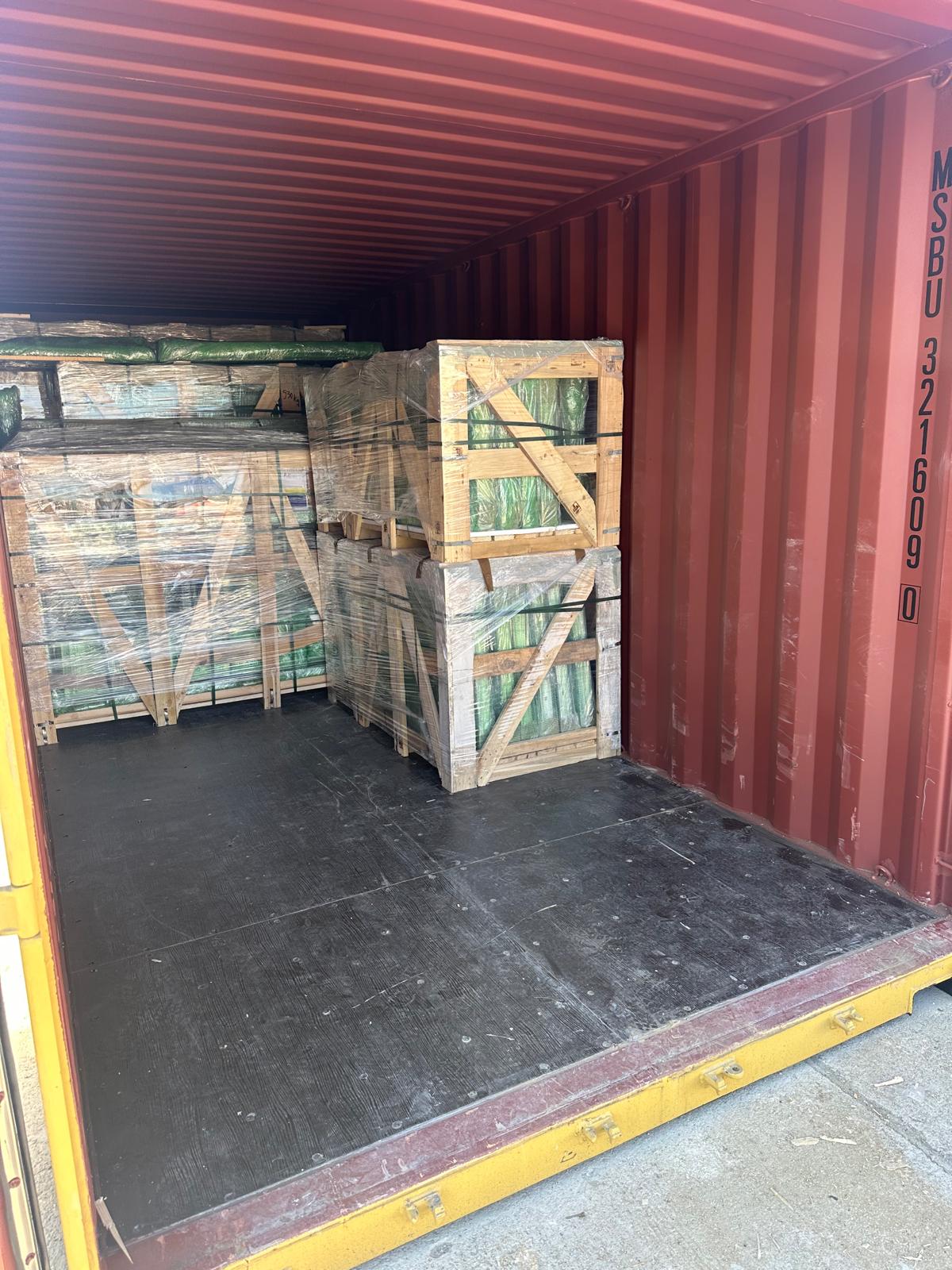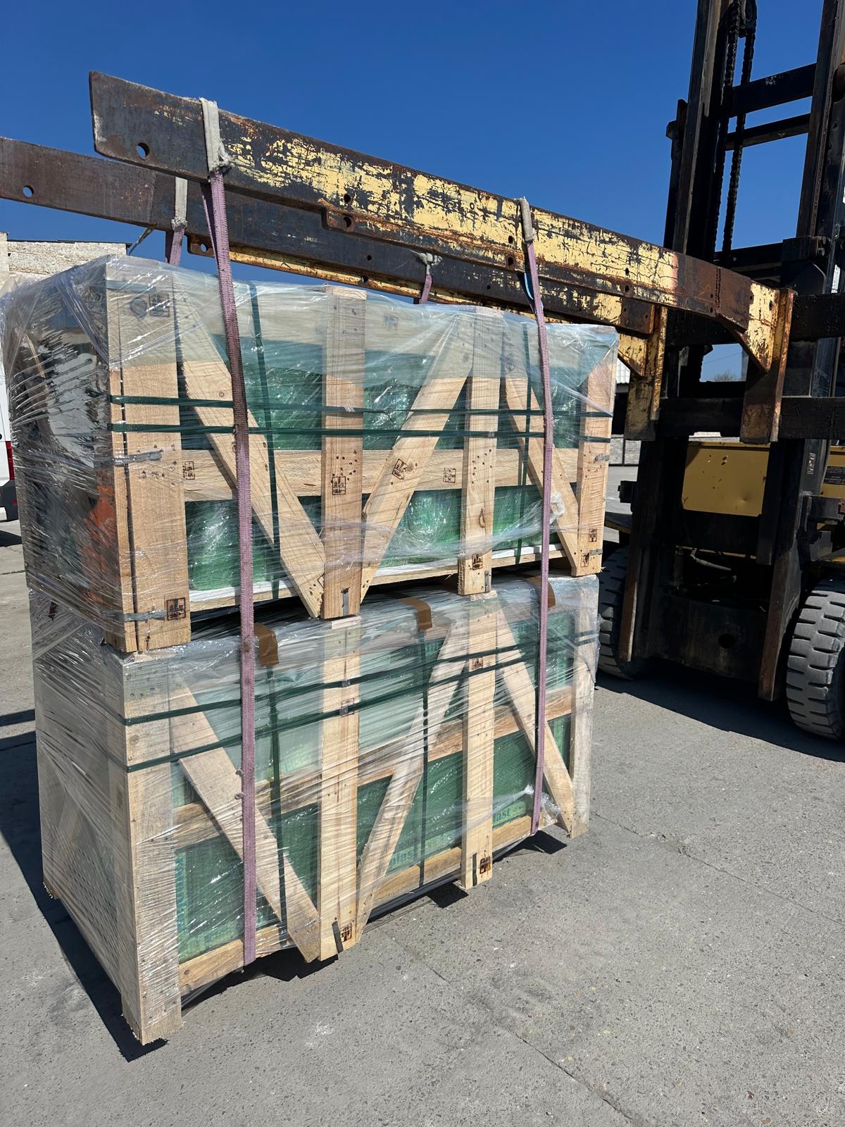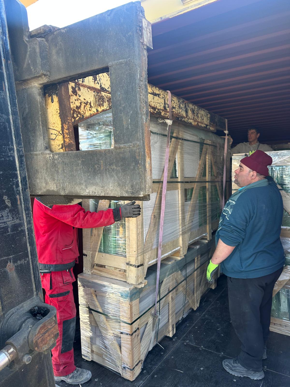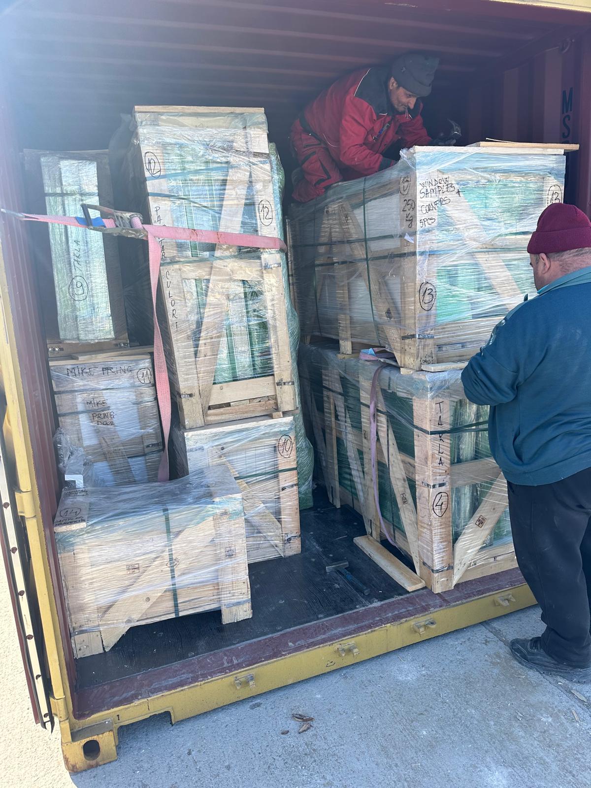 Packing in wood crates with special materials to prevent breakage , loading on container at factory site and secure it .